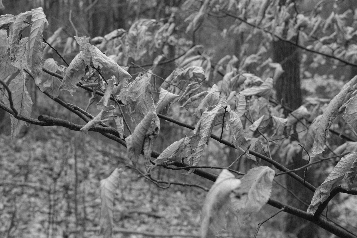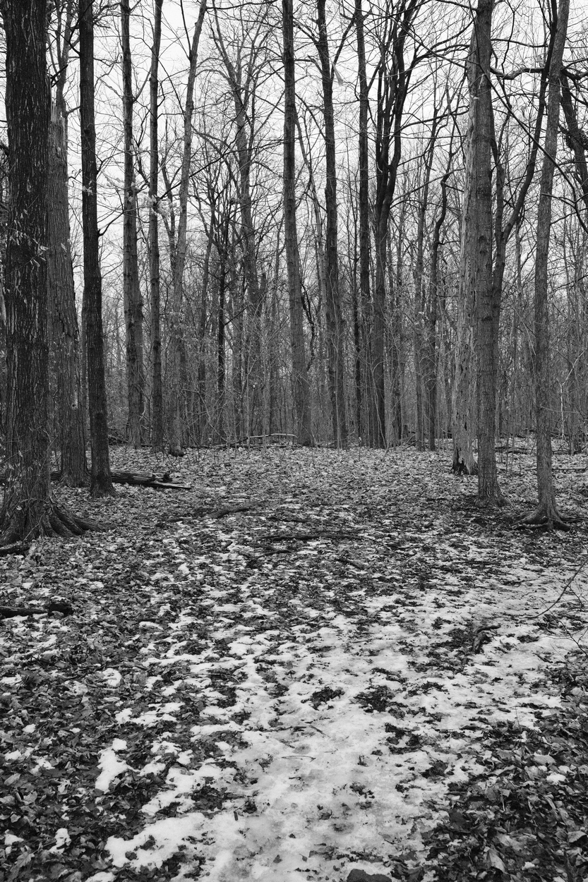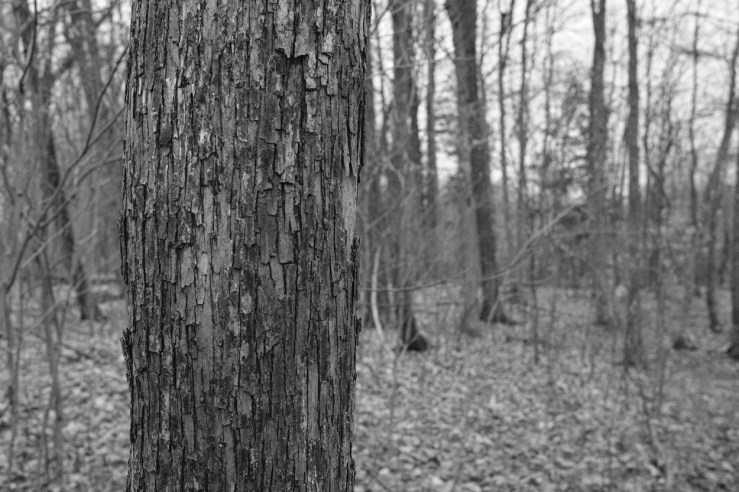 Beaver Dam – Etobicoke CreekToday Henry and I took a path through the local woods and along the creek; we’ve done this many times before but the changing seasons means there’s always a new angle to old scenes. I set the camera to the Acros + Red Filter simulation with a heavy grain effect to hopefully give me that filmic look. And there was more than enough in terms of subject matter. Bare trees don’t have the visual appeal of a tree in full fall glory, but they have texture and character that lend themselves well to a black and white interpretation. Thinking ahead about the nature of the landscape means that the camera is set and ready to go when it’s needed. By shooting both Raw and Jpeg I give myself the best chance for success, but the Fuji Jpegs are so good these days that I can often throw away the Raw files and save some space.