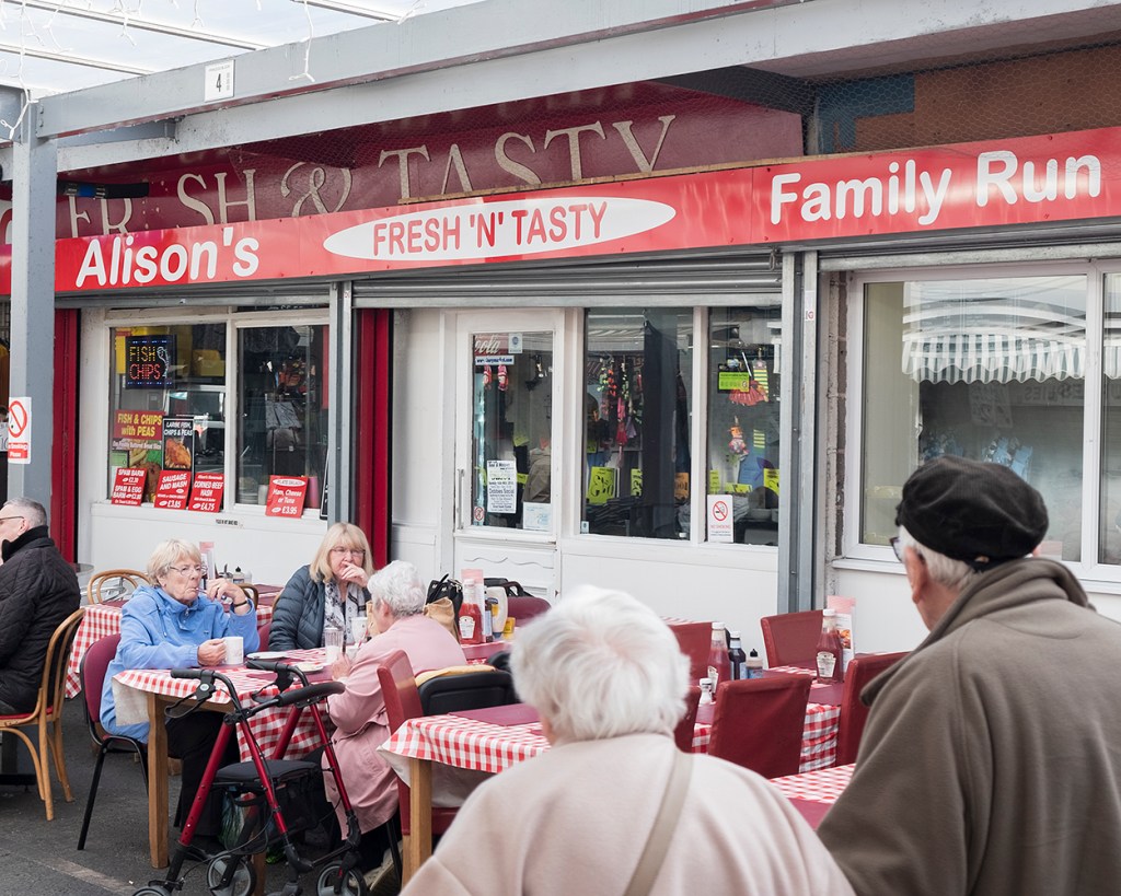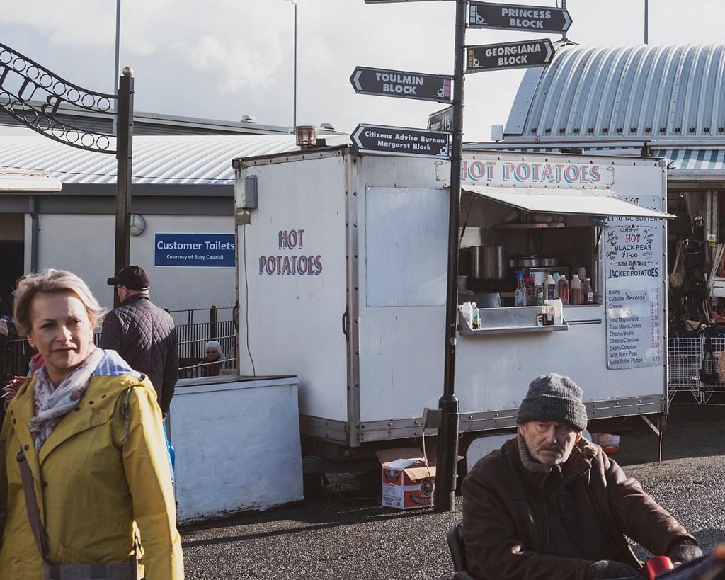 These shots combine the location and the people. The subject matter is not just the location, nor is it just the people, it’s both. The shots are all taken in and around Bury Market; without the people the locations would be empty, they wouldn’t work. It’s the people who bring this unique market to life, picking up their shopping and stopping for a well-deserved cup of tea and snack, as well as chat to their companions.
