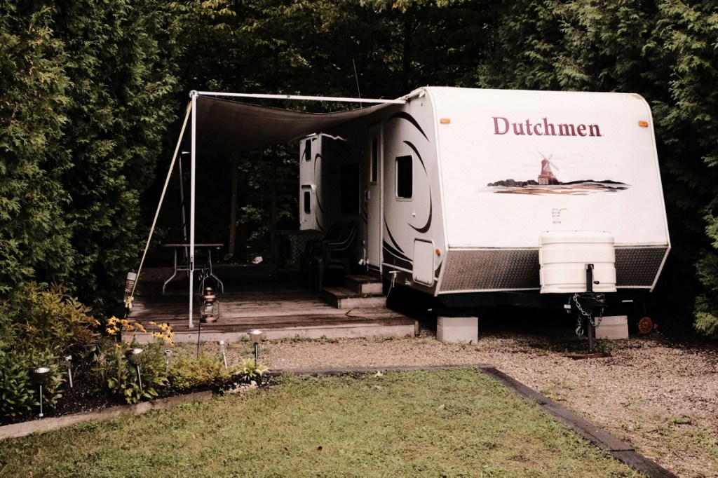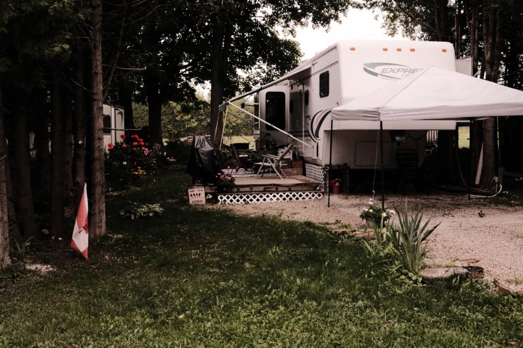 Fast forward over 50 years. The north of England has become Southern Ontario, caravans are now called trailers or RVs, the weather is (mostly) better in the summer. This year, the year of the pandemic, the campgrounds which usually open in mid-May were shuttered until July. The shortened season will finish in mid-October, but already some of the grounds are almost silent during the week. The children have gone back to school, whether physically or online, and while there are still trailers parked many of them are empty, waiting for the next weekend when the visitors will come back, kids will be cycling on the pathways, dogs will be barking at strangers. But a quiet campground is a strange place.