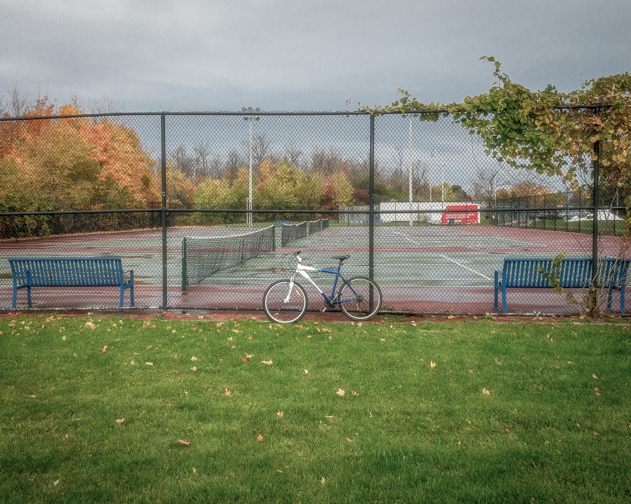 Bicycle Posted on October 27, 2020 by Chris M The bicycle was locked to the fence of the tennis court, but perfectly placed between two benches. Was the rider making some sort of point or were they just slightly obsessive? Share this:TweetLike Loading... Related