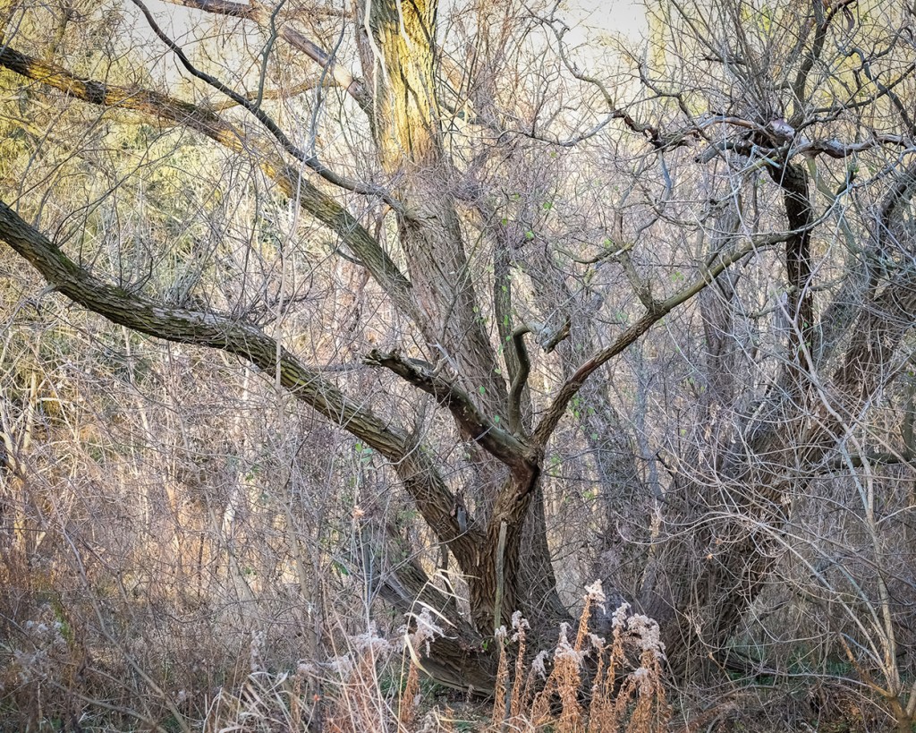 Back to the Walking with Henry series this morning, with two images. Both were taken on the Creek trail leading up to Loafers Lake. This lone tree is always striking, but more so now that the leaves have gone and you can see the structure. The second photo is one of my favourite spots on the trail. When the early morning sun hits them, beautiful.