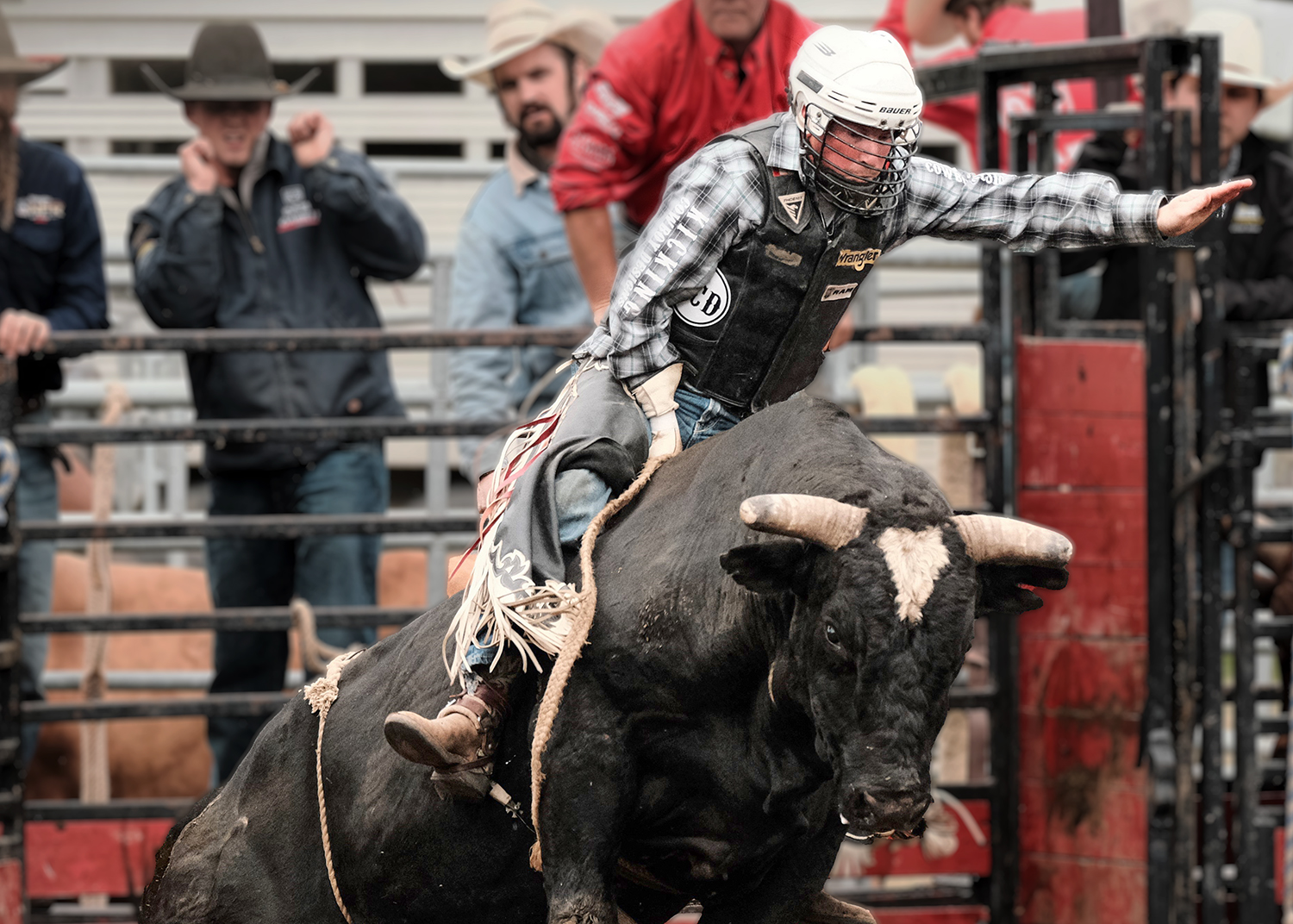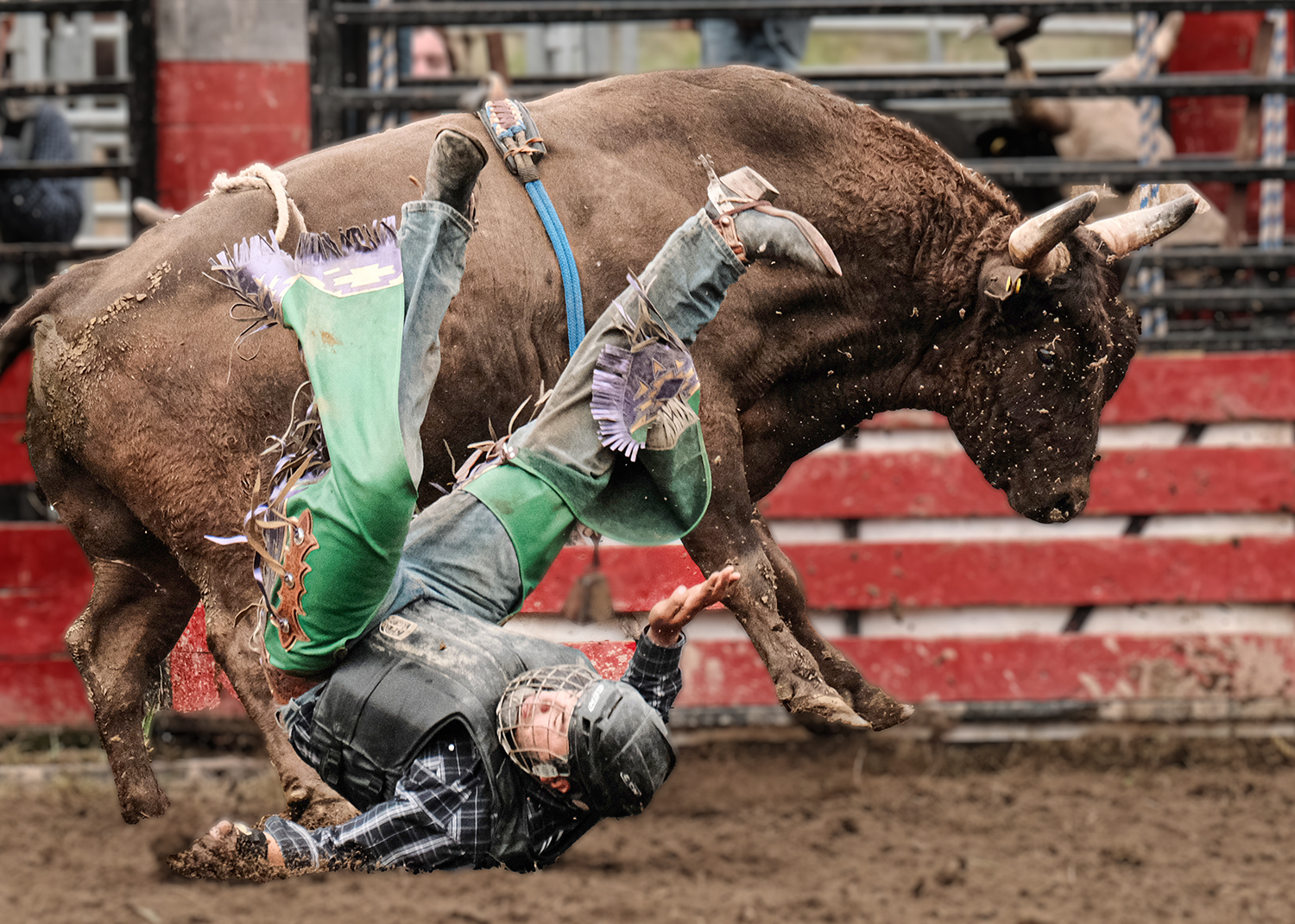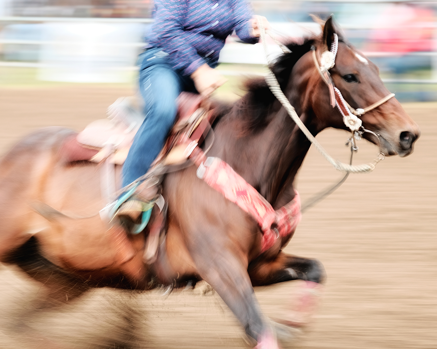 Before I sold most of my Nikon gear – the weight was getting too much for my old back – and moved to the lighter Fuji mirrorless range I would regularly shoot with my D500 or D7100 and my 70-200mm f2.8 which is a fantastic lens for getting those up-close and in your face shots. I have to say that I’m not a great fan of the rodeo shot which shows the arena, the crowd and the competitor in the centre of the shot. I tend to adopt the same principle as I used for my rugby photography – get in the face, find the emotion and capture a specific moment. Each to their own, but that’s my approach. I also like to throw in a little abstract now and again, slowing the shutter right down and producing something that I hope is a little out of the ordinary.